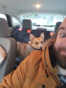 Dobby had a fun adventure with Dad (Brent) traveling from Utah to Wisconsin! Look how happy he is!!!!